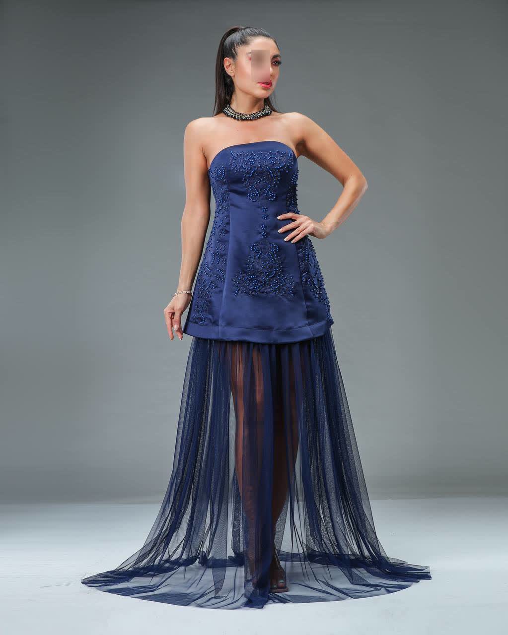 تونیک مجلسی شیک کار شده آبی کاربنی