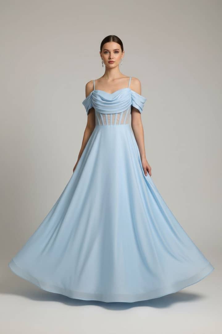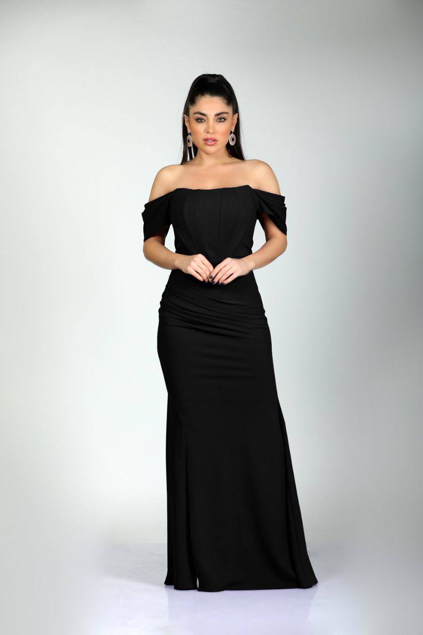 لباس مجلسی ماکسی مدل آستین‌افتاده با دامن کلوش