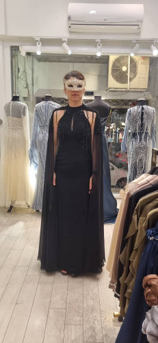 لباس مجلسی بلند شنل دار ملیله‌دوزی‌شده